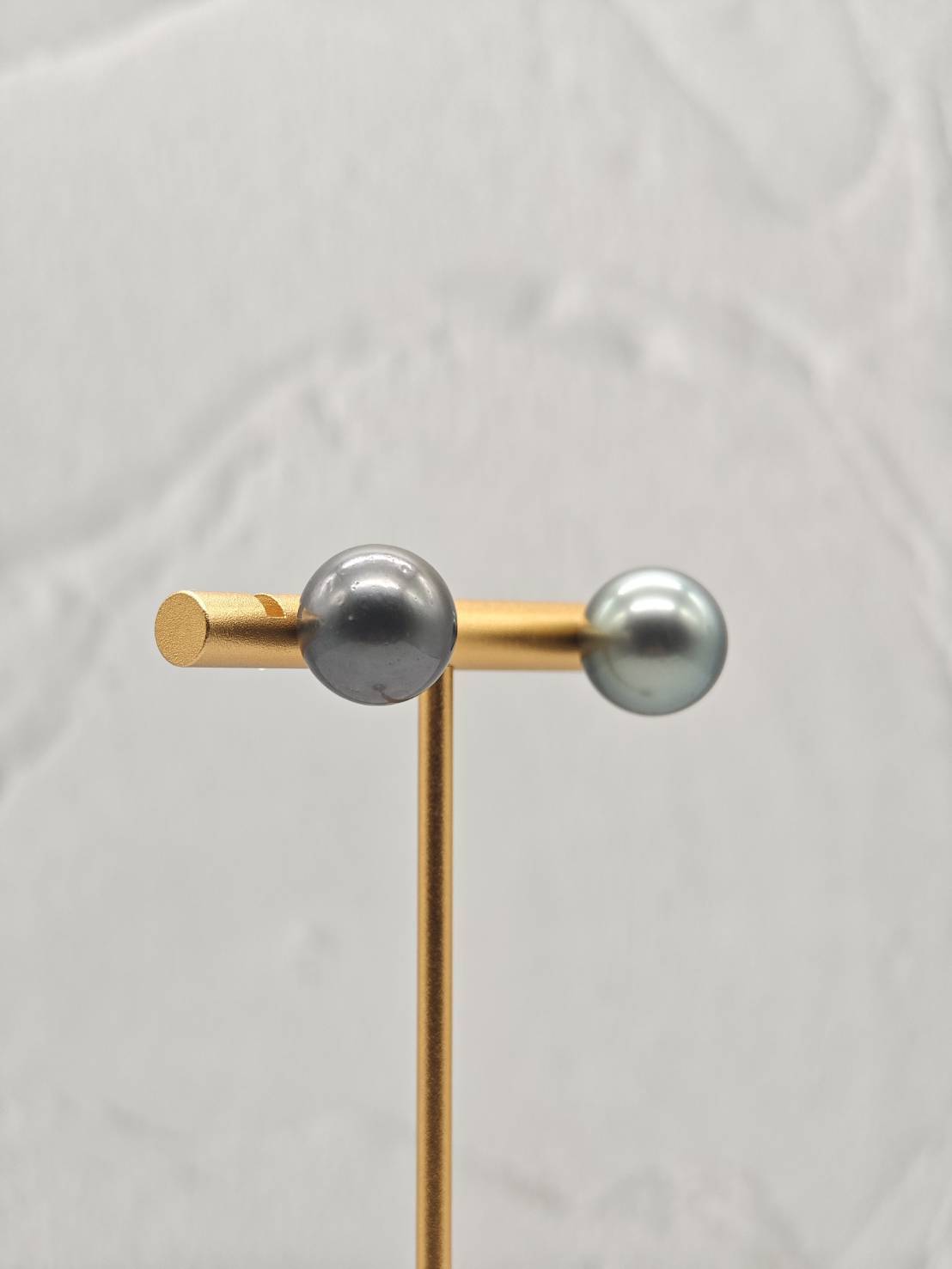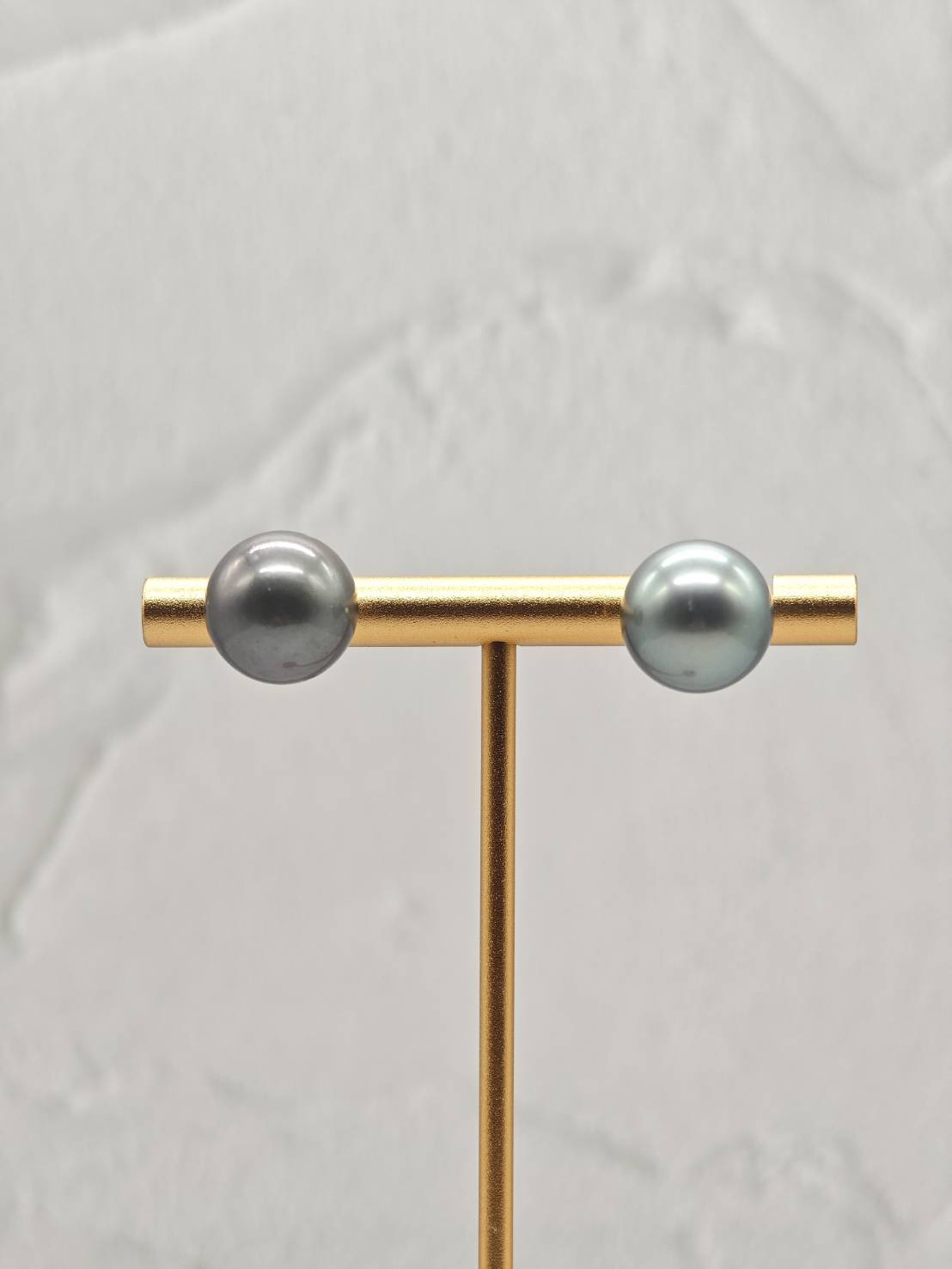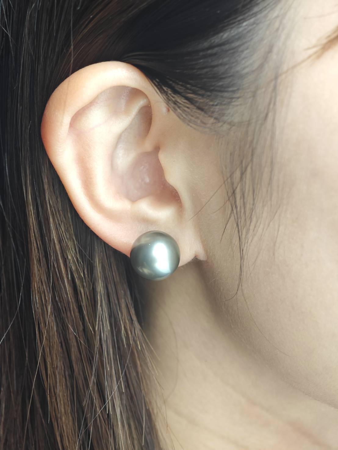 深みのあるグレートーンが静かな存在感を放つ、南洋タヒチパールピアス。