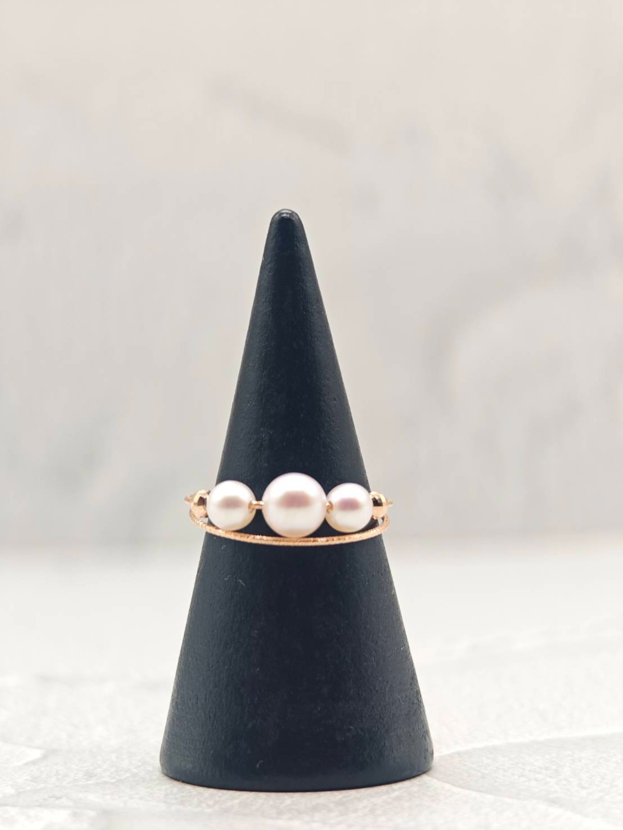 4.0〜5.5mmのパールが描く緩やかなラインは、角度によって異なる表情を見せ、手元をやさしく彩ります。