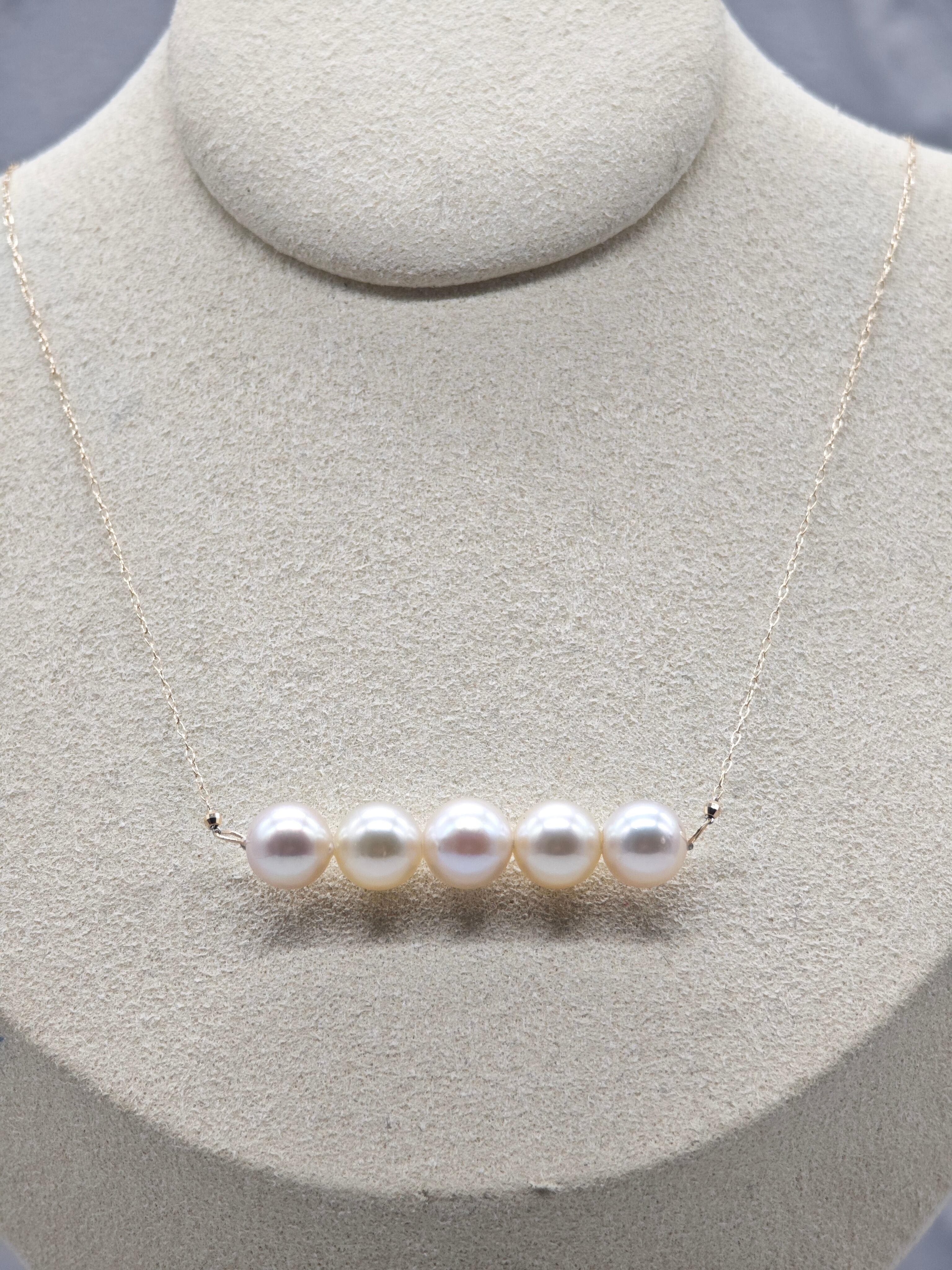 あこやマルチ5ヶ並びペンネックレス K18 7.5m/mup