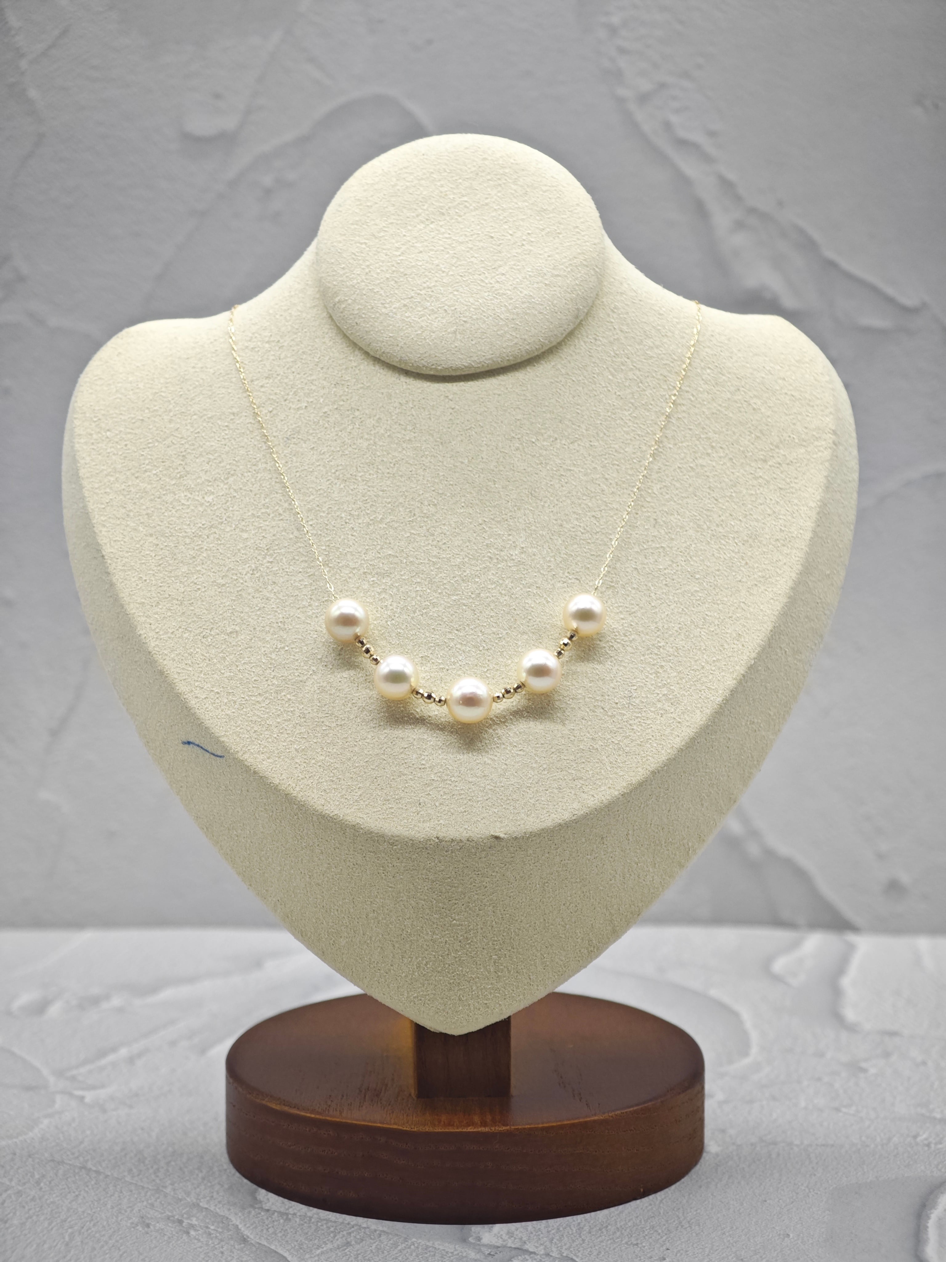 7.5〜8.5mmの真珠が描く緩やかなラインは、自然体の華やかさを引き立て、