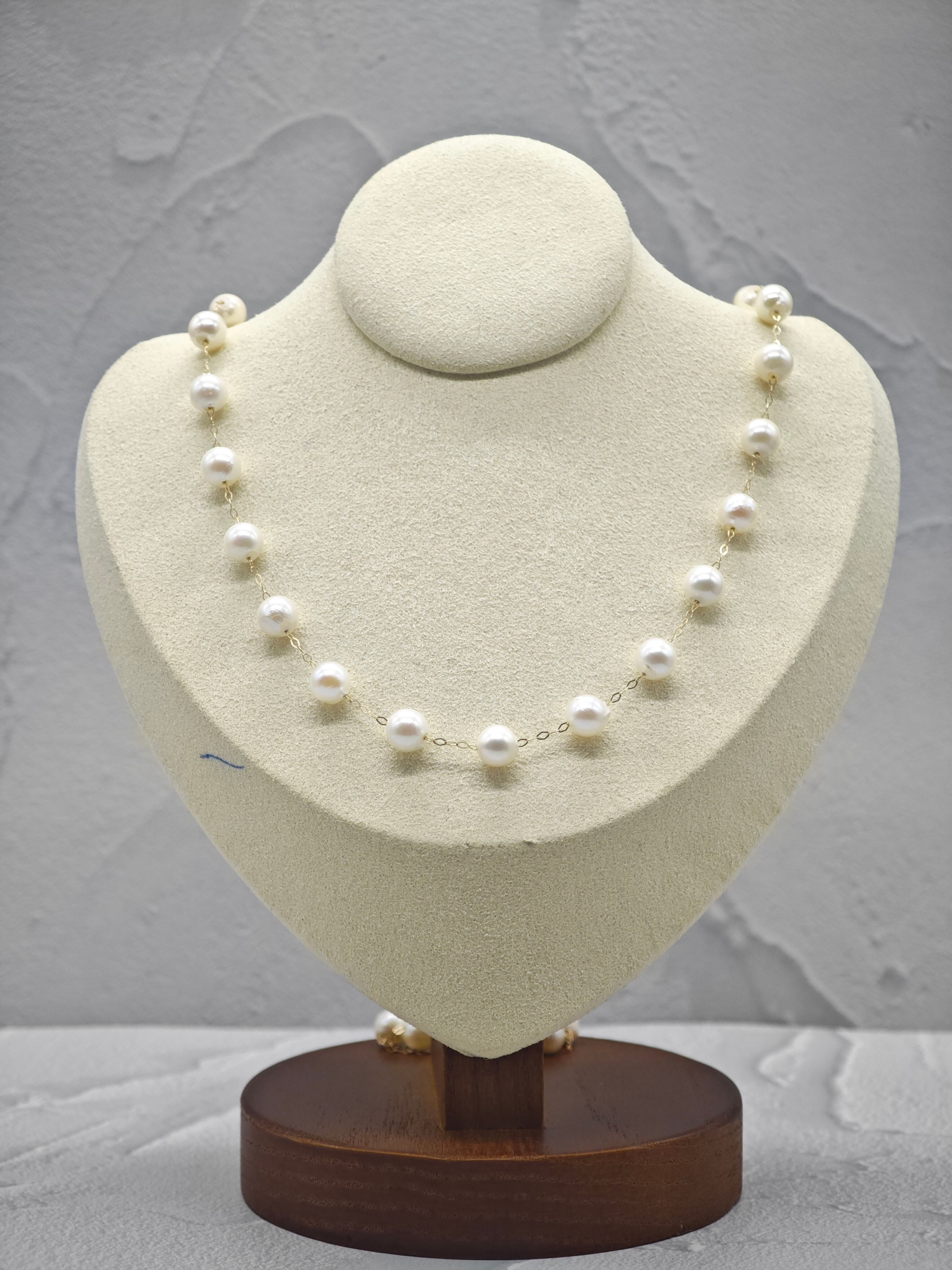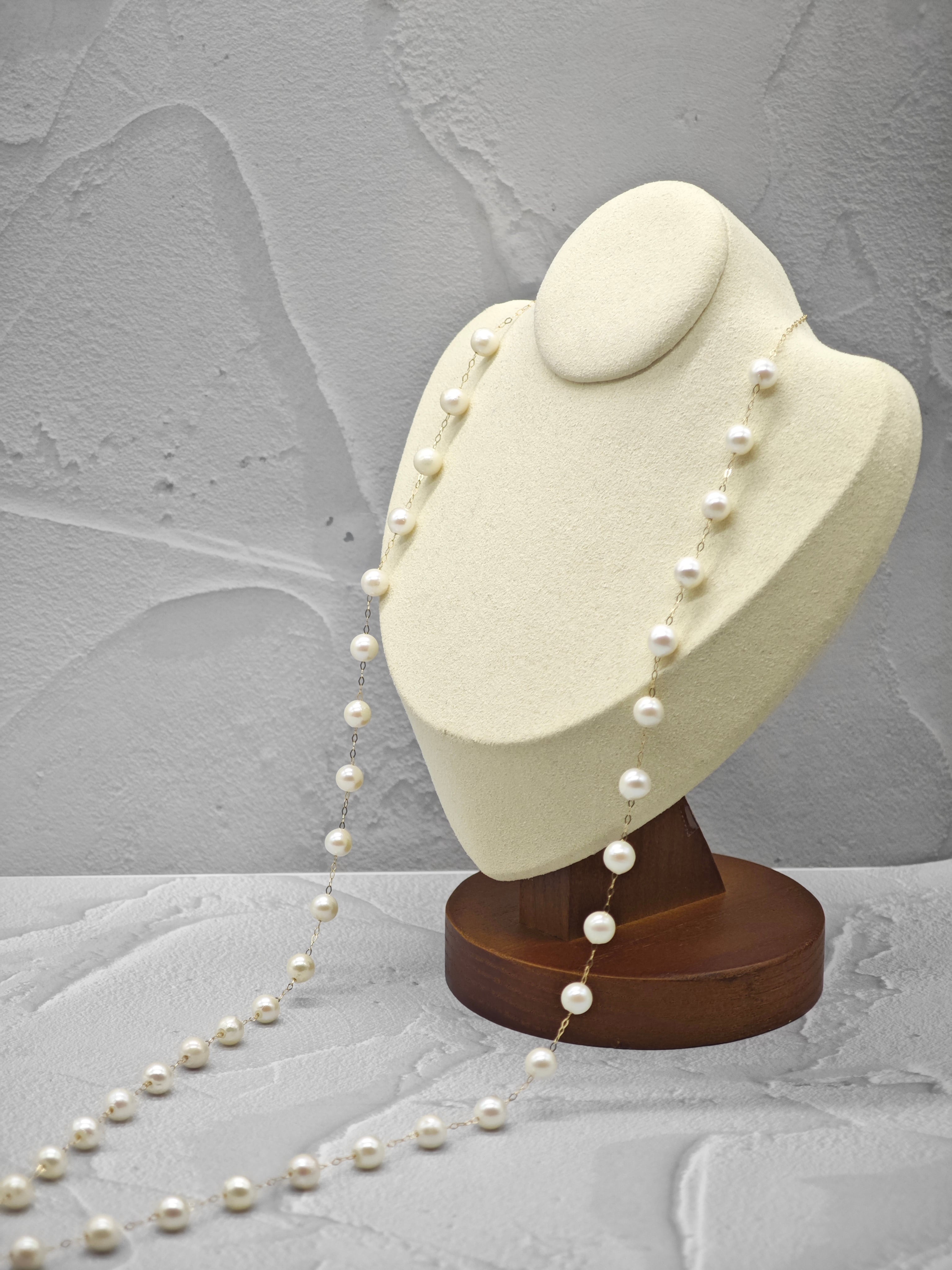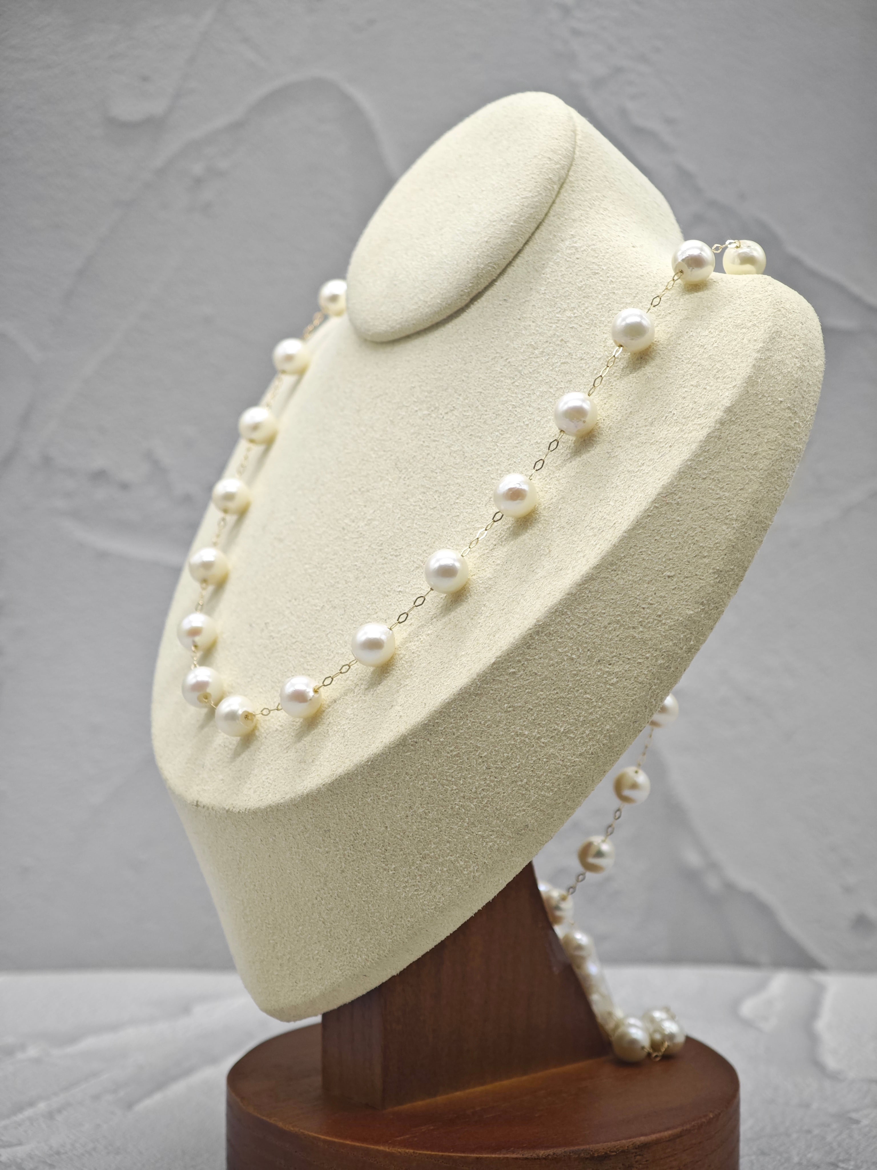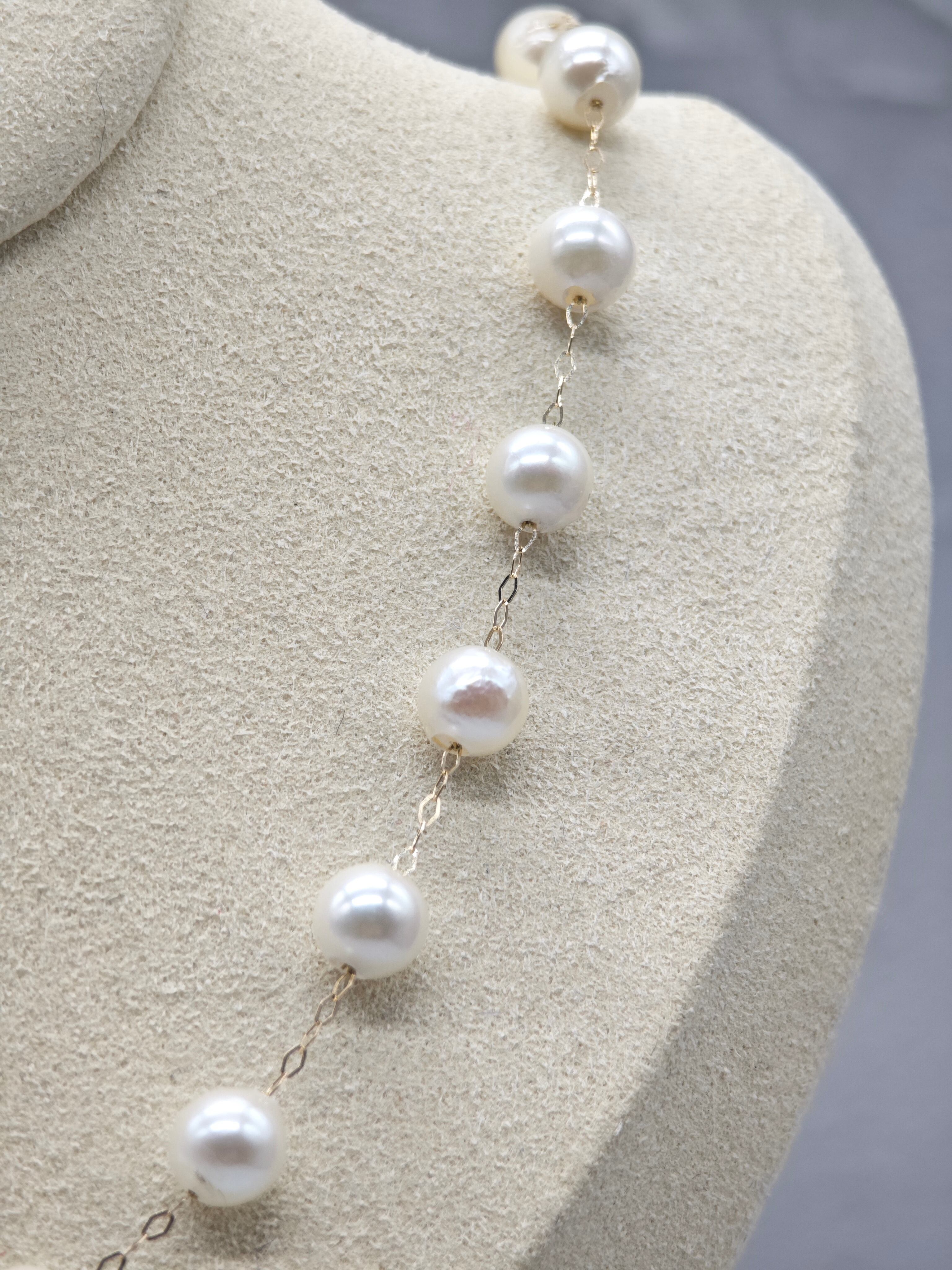 無調色あこやステーションロングネックレス K18 6.5-7.0m/m