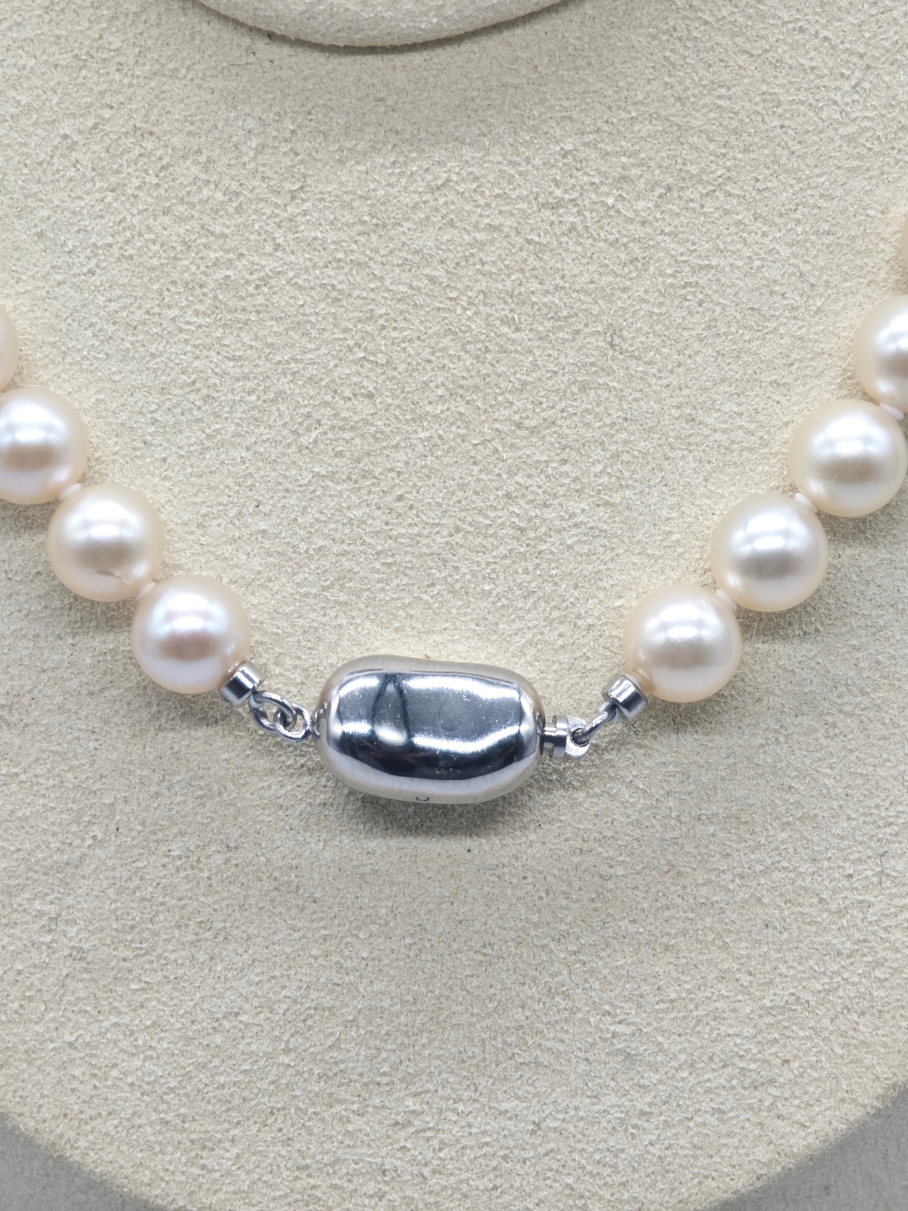 大粒8.0〜8.5mmのあこや真珠を贅沢に使用した、上質な一本。