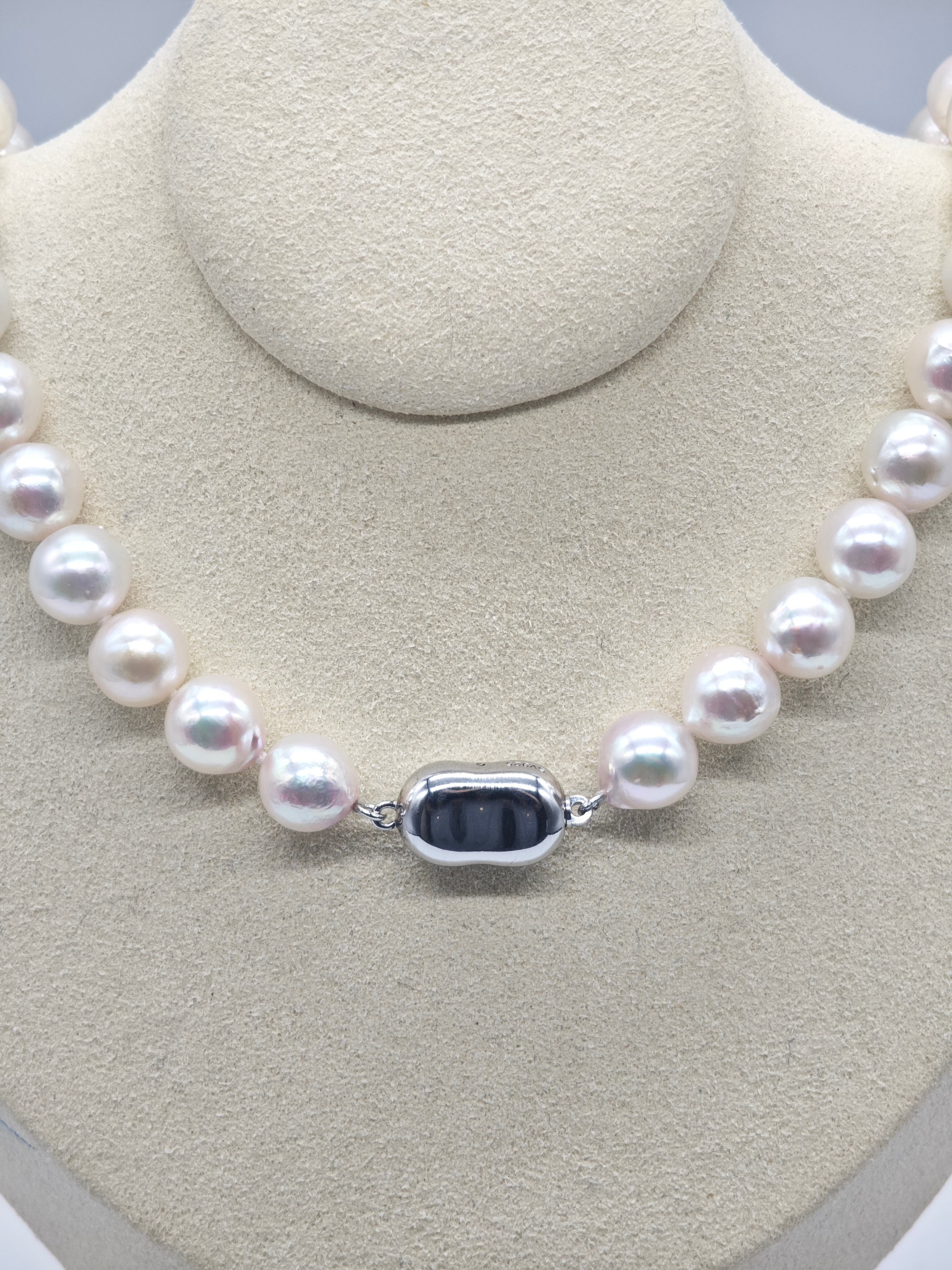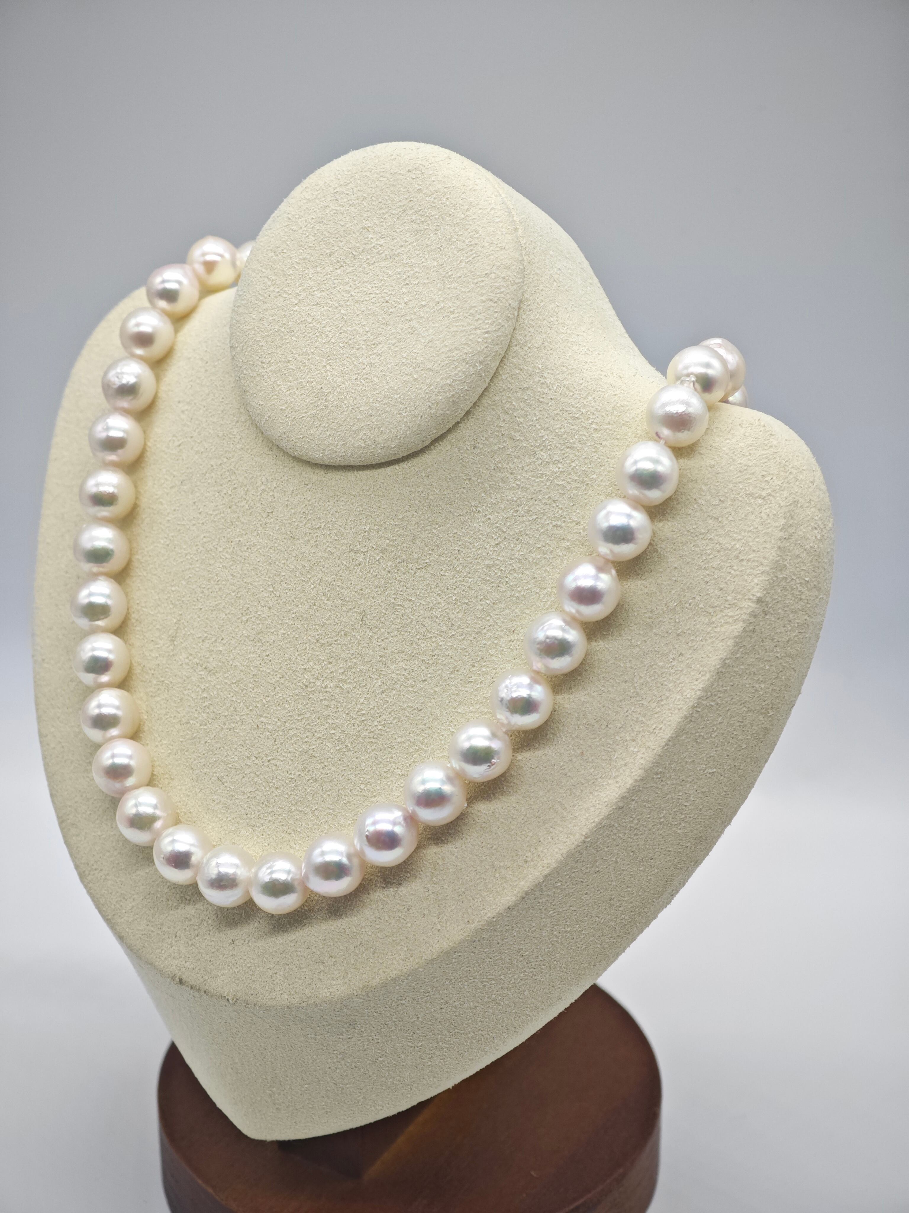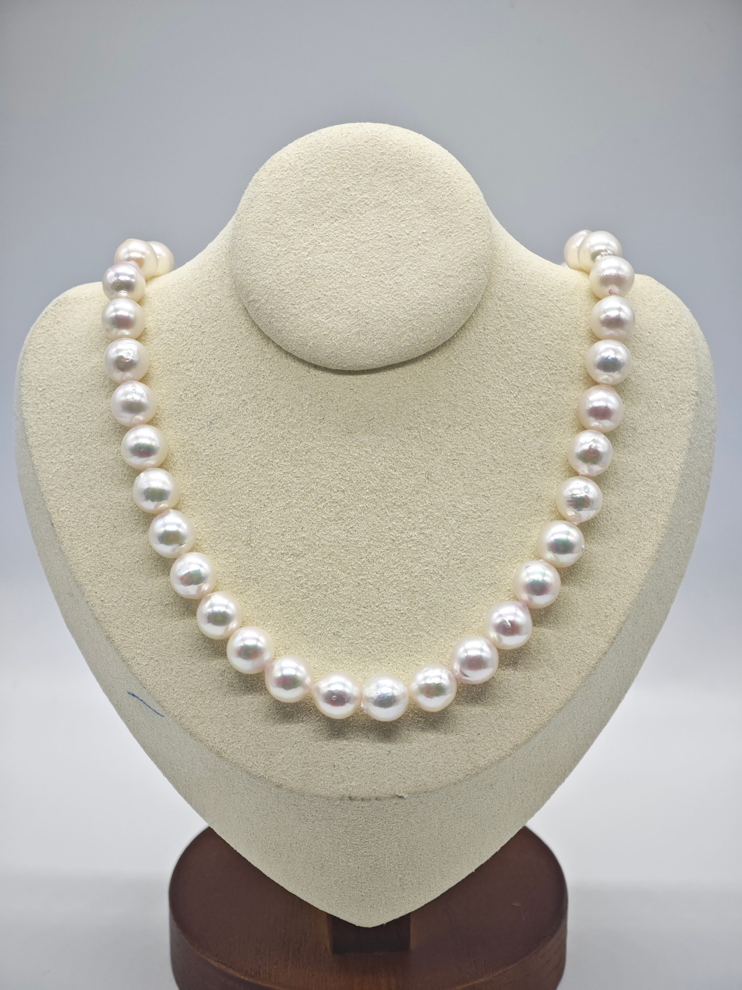 希少な9.0〜9.5mmの大珠あこや真珠を連ねた、堂々たる存在感を誇る一連。