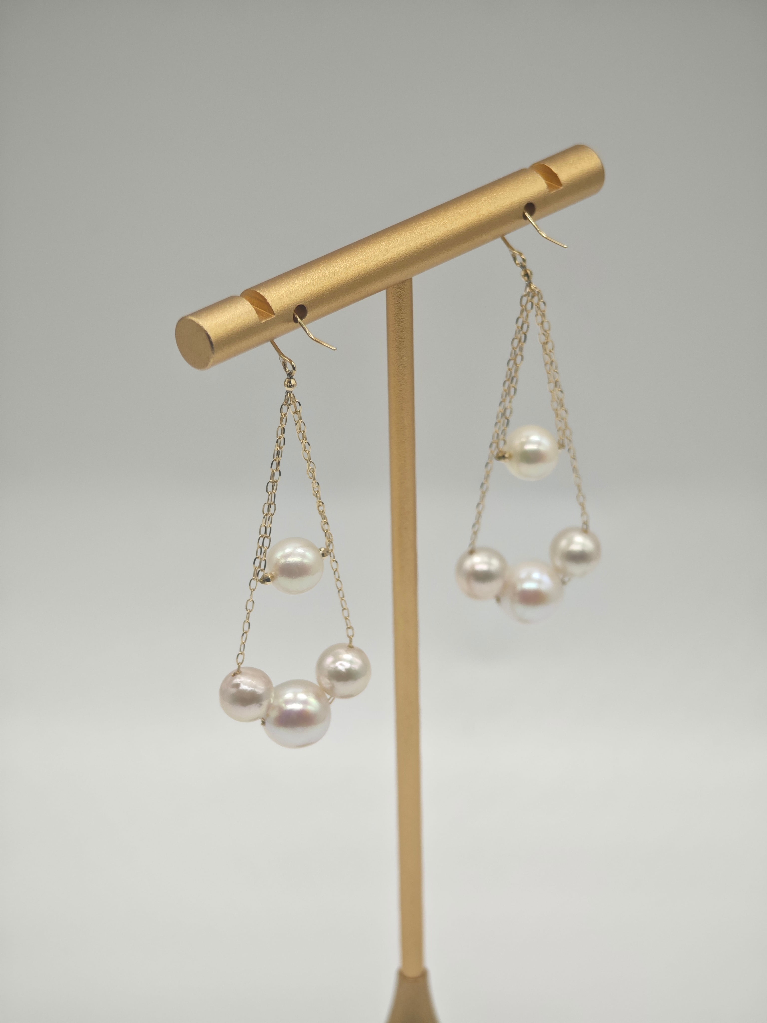繊細なK18チェーンに、あこや真珠が軽やかに連なるフープデザインピアス。