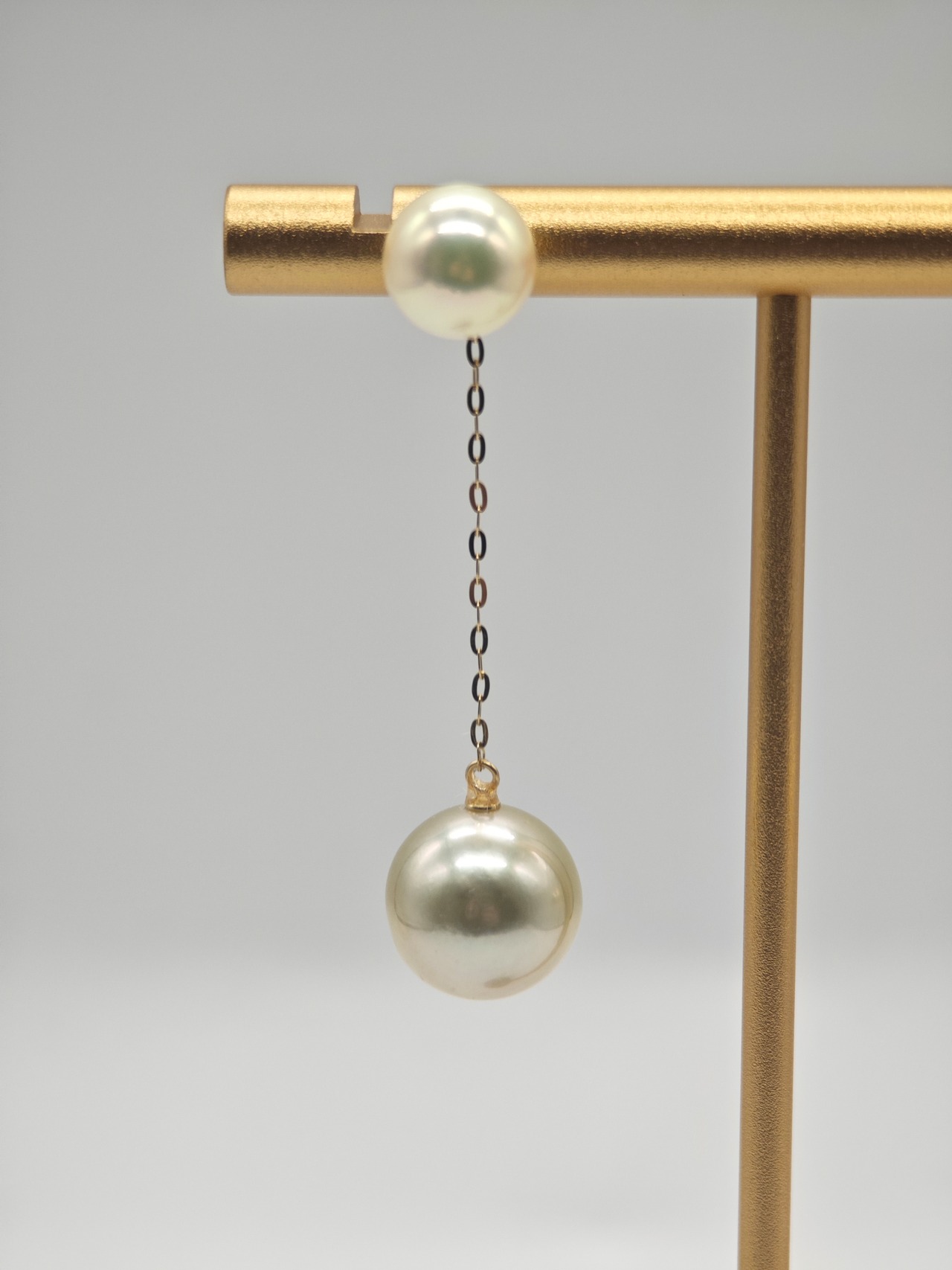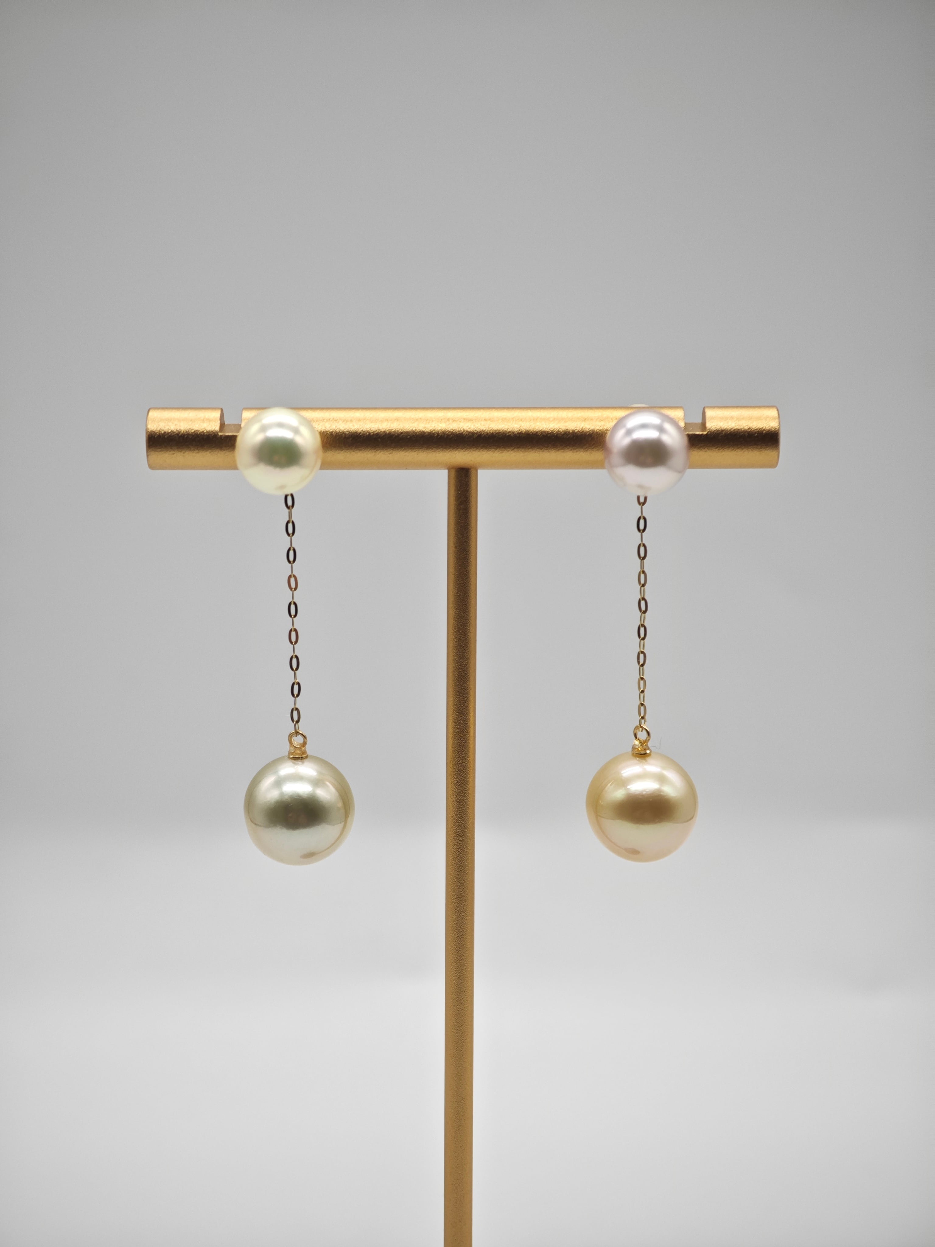 上質なあこや真珠と南洋ゴールドパールを組み合わせた、気品ある二連チャームピアス。