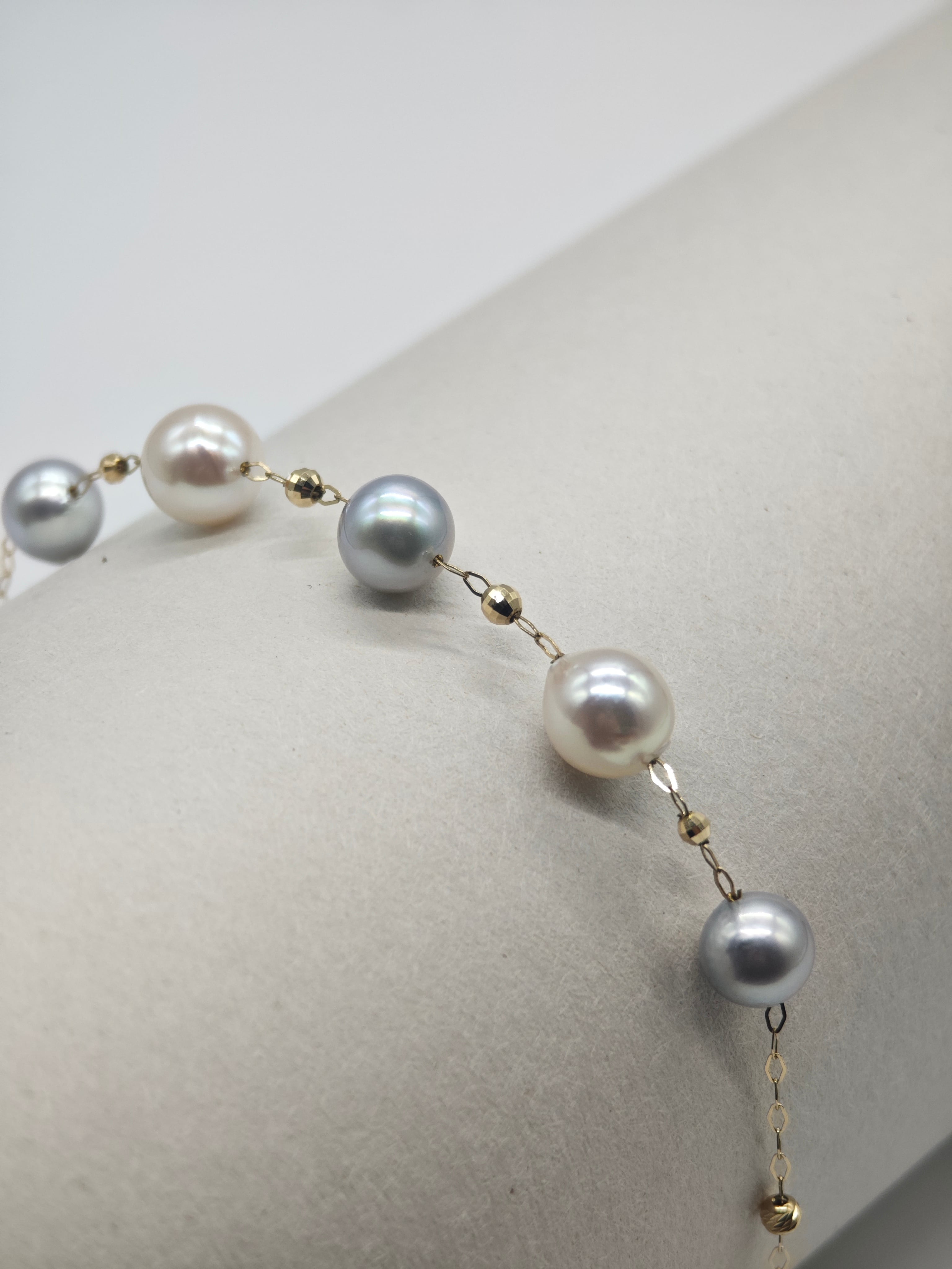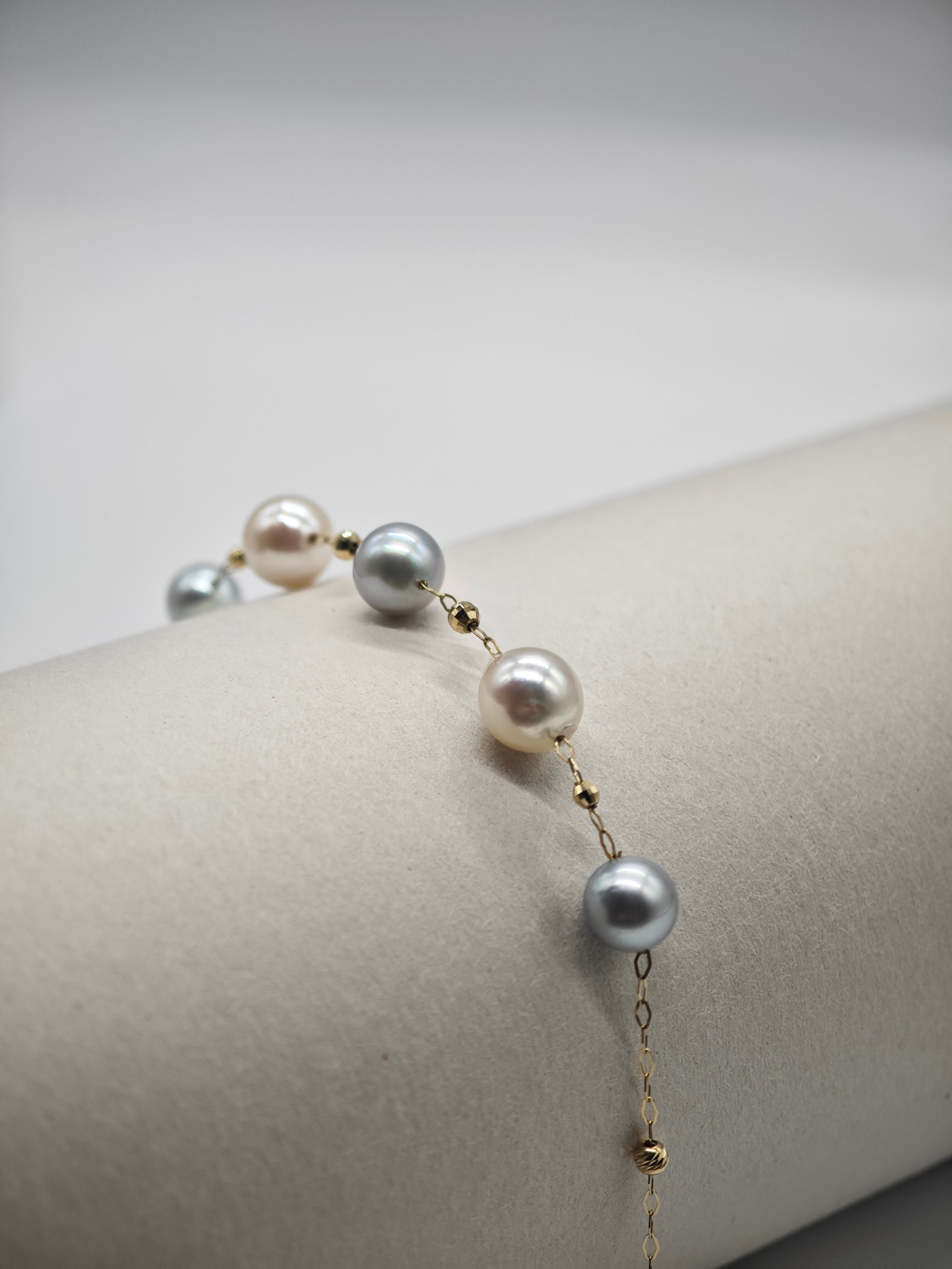 上質なあこや真珠を使用した、エレガントな2色のブレスレット。